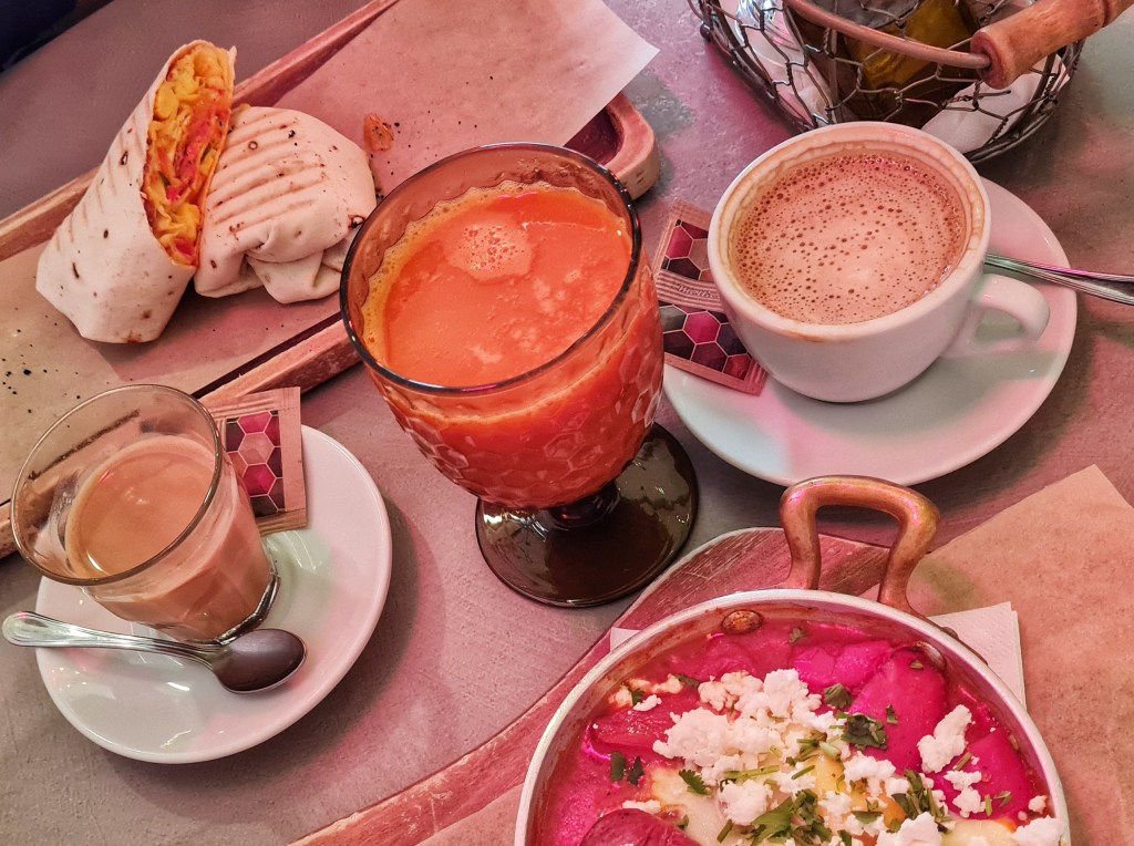This restaurant that specializes in breakfast, located on the Buda side of the Danube, is pretty popular. We had to wait around 15 minutes ‘till a table was available. The atmosphere was very cozy and the food was also very good. I had a shakshuka with chorizo and Andrei had a breakfast burrito – even though this sounds more like a dinner it was a reinvented burrito that had more in common with breakfast.