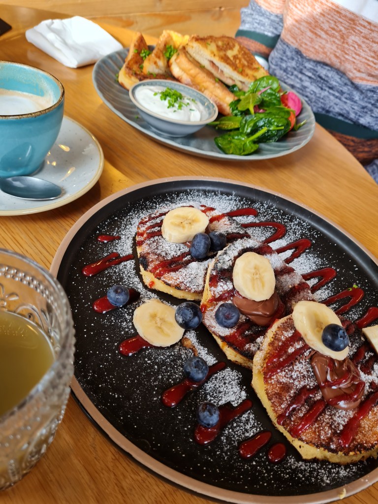 Since breakfast is my favorite meal of the day, before a trip, I always research for breakfast restaurants. I found this location from a food blogger that I follow (abreakfaststory – I could say she is an expert in all things breakfast). We didn’t have a reservation prior to going there (and apparently you need one even for breakfast), but luck was on our side and the nice waiters allowed us to sit at their table. Whilst browsing the menu I could not decide what to order as everything sounded very good – I wanted to try them all! We finally decided for eggs Benedict with salmon and bundas kenyer (a traditional Hungarian toast filled with ham and cheese, pickled onion, garlic sour cream dipping). Of course we also shared some American pancakes with fruits and chocolate – there is always room for dessert. The food here was amazing like we expected and we almost managed to eat everything we ordered.