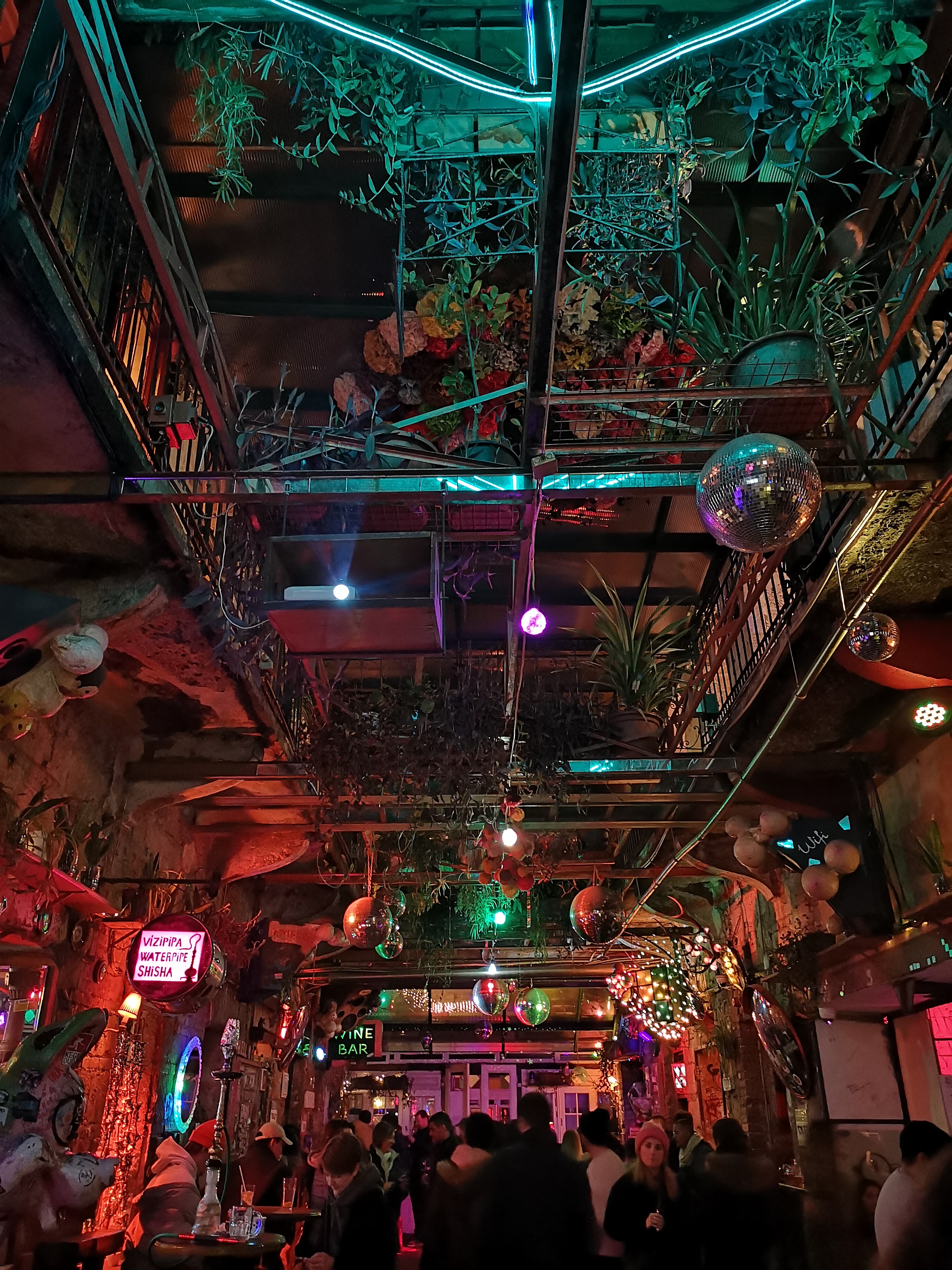 This particular ruin pub is immense! I counted at least 7 bars spread among around 30 rooms on 2 floors, both indoor and outdoor. It’s quite a unique feeling to enjoy a night out in a location that for some might seem like a contemporary art exhibition. Most drinks are reasonably priced, including artisan beers and cocktails. Fresh baked goods, homemade street cuisine, and delectable warm dinners are all available at the ruin pub.