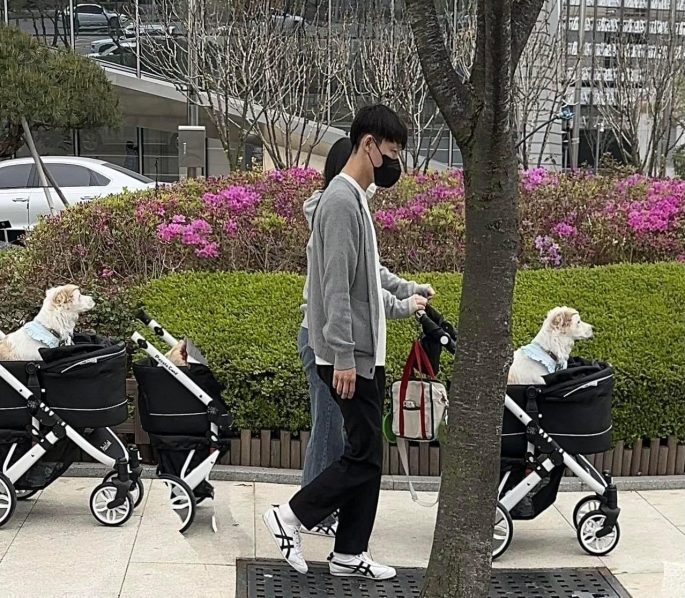 In South Korea, it’s common to see people pushing their dogs in strollers. While some use strollers designed for children, dog-specific strollers are also available. Although this trend may seem excessive, especially when dogs could walk on their own, many owners enjoy pampering their pets. Korea also has a thriving market for dog clothing and accessories; some furniture stores even offer dog outfits that match their furniture collections, so your dog can blend seamlessly with your decor!